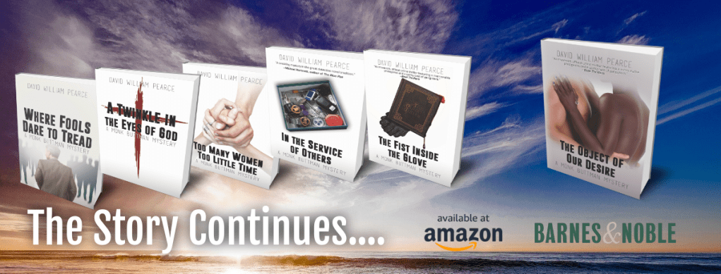 The latest book in the Monk Buttman series is The Object of Our Desire.